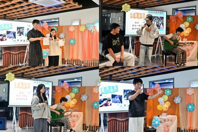 文艺表演环节同样精彩纷呈,为沙龙增添了别样活力。理工黑洞魔术社的同学们带来奇幻魔术表演,精妙手法令人啧啧称奇,引得现场阵阵惊呼;校艺术团声乐队的成员们深情献唱《红豆》《思念一种爱》《旅行中忘记》等曲目,悠扬婉转的旋律萦绕全场,让师生们收获了听觉与视觉的双重享受。活动最后,全体获奖学子、表演嘉宾和图书馆工作人员共同合影留念,将这份充满书香与荣耀的美好时刻定格。