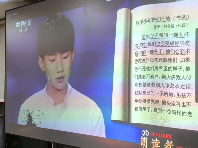 首先,主持人通过视频分享了王源、刘昊然、黄轩、李现等多位明星与《牧羊少年奇幻之旅》的不解之缘。王源在采访中提及这本书让自己"更坚定追梦的勇气",黄轩称其为"疲惫时的心灵解药",李现则直言"每隔一段时间就会重读",《两个人的小森林》中男女主角更是在剧中专门探讨书中哲理。这些来自公众人物的真诚推荐,打破了经典书籍与年轻读者之间的距离感,引发了现场师生的强烈共鸣,为整场读书会奠定了轻松愉快的基调。