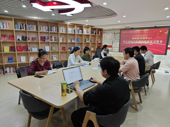 学习会上,支部书记温伟春首先提出学习要求,要深刻理解、准确把握、全面落实“立党为公、为民造福、科学决策、真抓实干”的总要求,在深化学习研讨、全面查找问题、推进整改整治、抓好建章立制等方面下功夫,确保学习教育取得实实在在的成效。随后,温伟春领学《论述摘编》第一篇“政绩观是一个根本性问题”和《习近平总书记地方工作期间坚持正确政绩观生动实践》之河北正定篇。随后几日,康思本、张蕾、黄成立轮流领学《论述摘编》的剩余篇目和《生动实践》重点篇目。在研讨环节,支部围绕“如何将正确政绩观融入图书馆(资源中心)工作”展开了热烈讨论,一致认为要结合学校办学水平评价和新馆建设等重点工作,把政绩观学习教育做深做实,一体推进学查改各环节工作,大力弘扬“愿担当、敢担当、善担当”的优良作风,切实以正确的政绩观引领图书馆事业高质量发展。