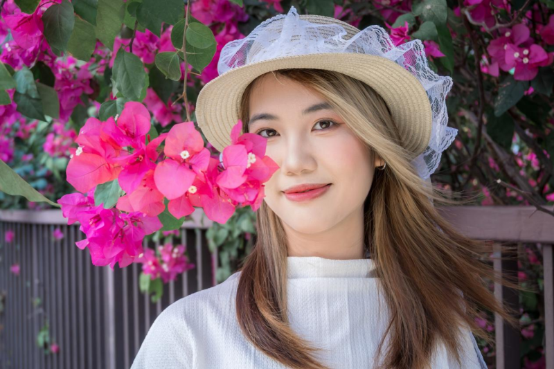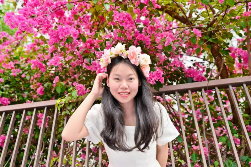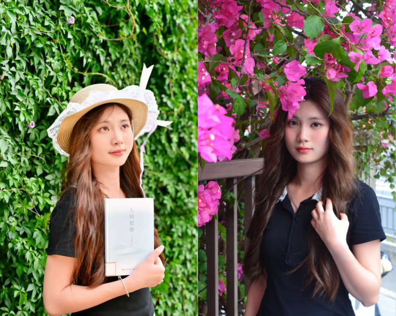 本期活动灵感源于传统花朝节文化与当代审美体验的结合。图书馆资源中心不仅精心选取了中山校区三角梅与牵牛花盛开的取景地,更为参与者贴心准备了泡泡机、草帽、花环、书本等多种拍摄道具力图在光影中定格独一无二的青春故事。活动中,摄影师耐心引导,参与者尽情展现,在花墙前留下了一张张灿烂的笑脸与一个个灵动的身影,现场气氛欢快而温馨。